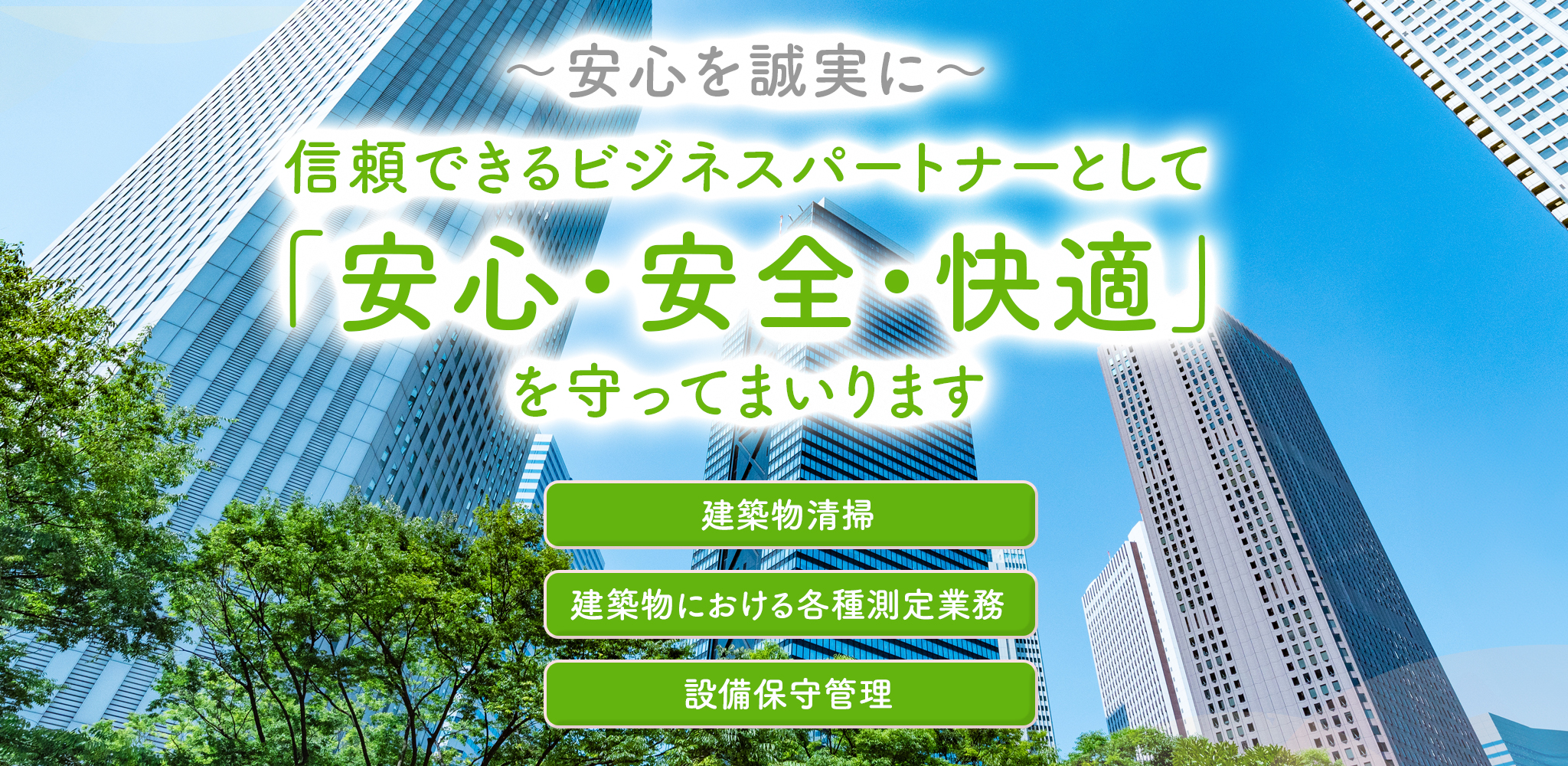 清掃、設備点検、環境衛生管理、警備など、お客様の財産価値を守り、建物の維持管理を一括で請け負います。